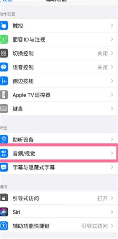 进入辅助功能之后,然后我们点击里面的音频视觉选项。